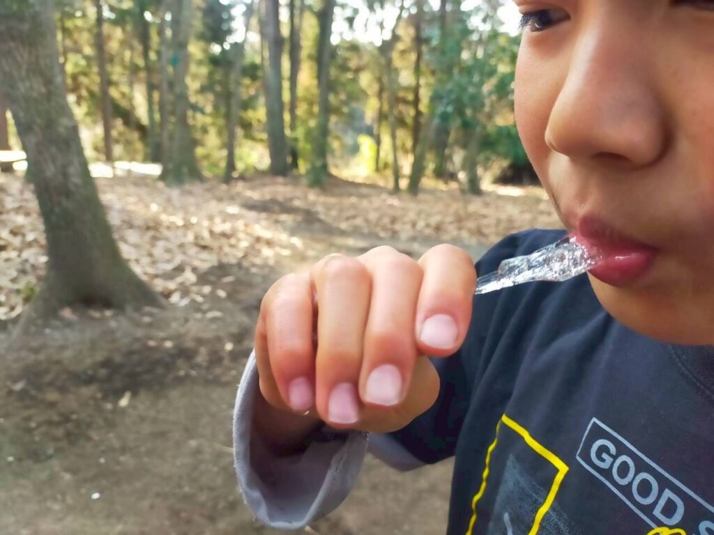 見るのを楽しんだ後は、「…ぱくっ!」と氷を食べてみました。笑