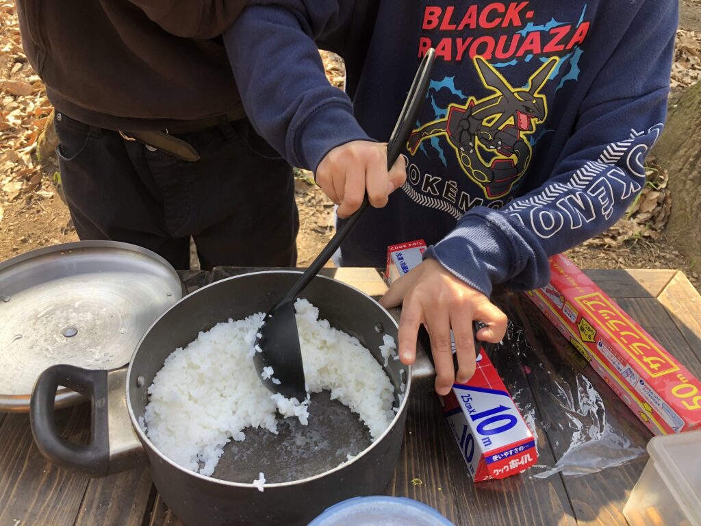 寄付で頂いたお米も子どもたちと一緒に炊きました!