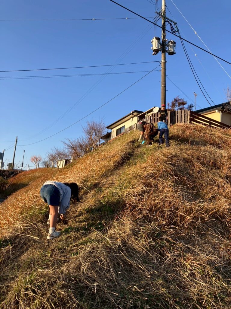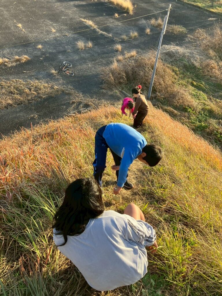 かと思えばこの寒い中、裏の空き地(ほぼプレパ)でスコップ片手に遊んでいる子どもたちを発見!