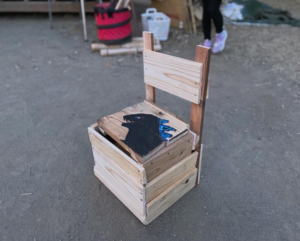 小学1年生の女の子は、弟のために椅子(↓写真)作りにスタッフとチャレンジしてみました!