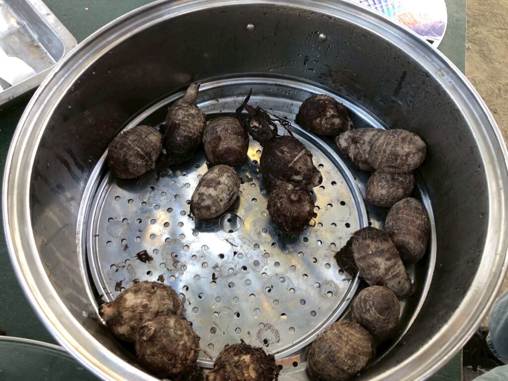 そして、7日は、都城ドミニコ学園さんからの差し入れの里芋をフナヤンの蒸し器でふかして熱々をみんなで頂きました!