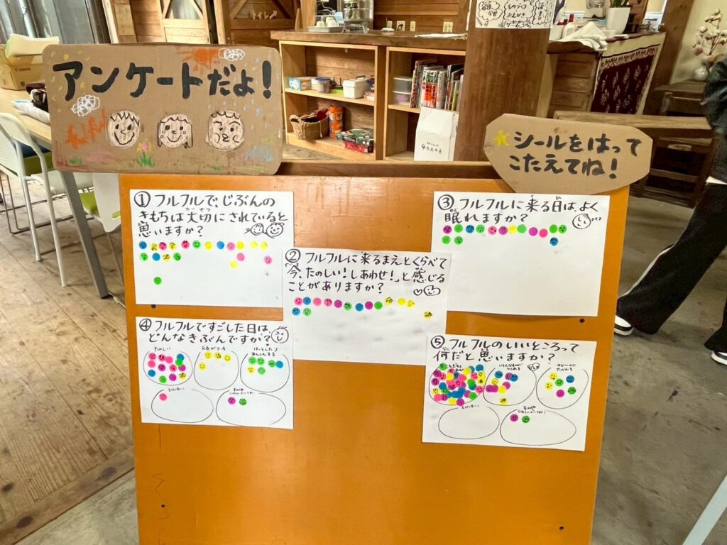 「友だちと遊べること」という選択欄にたくさんのシール✨