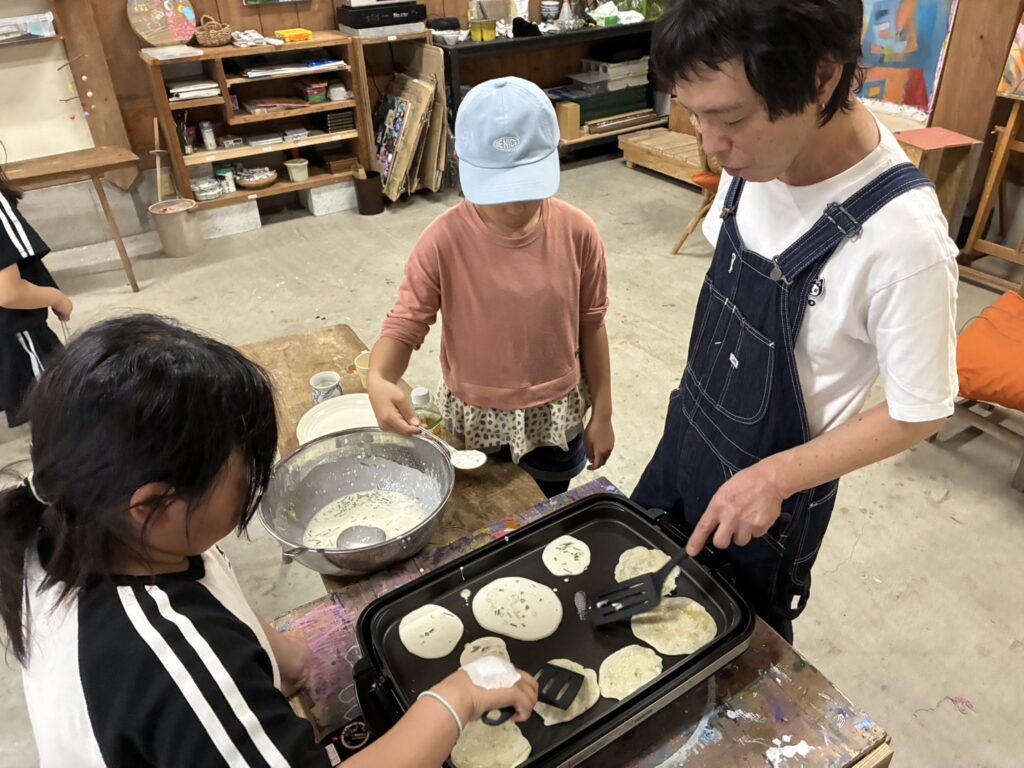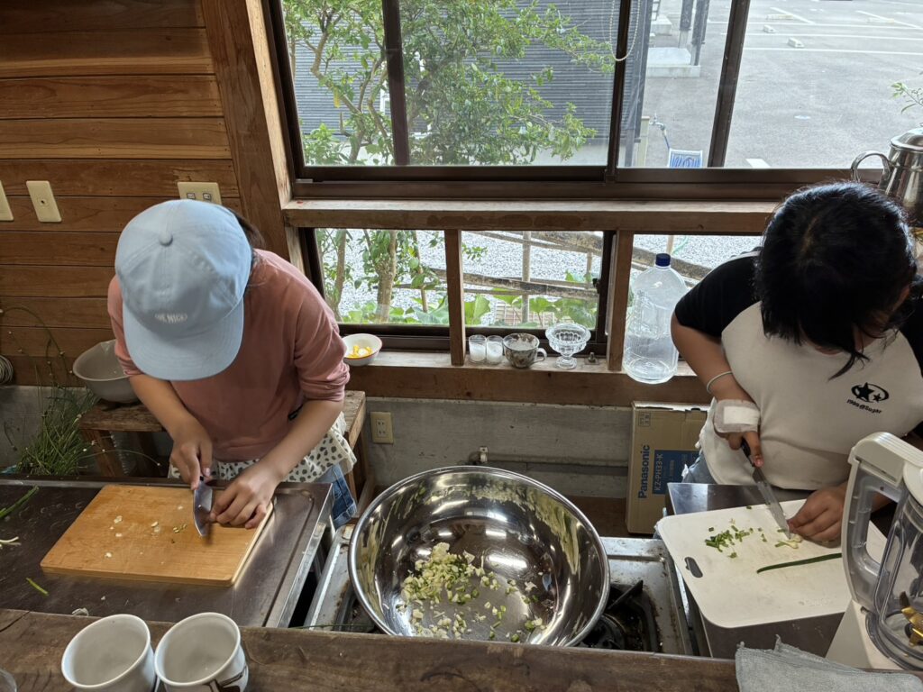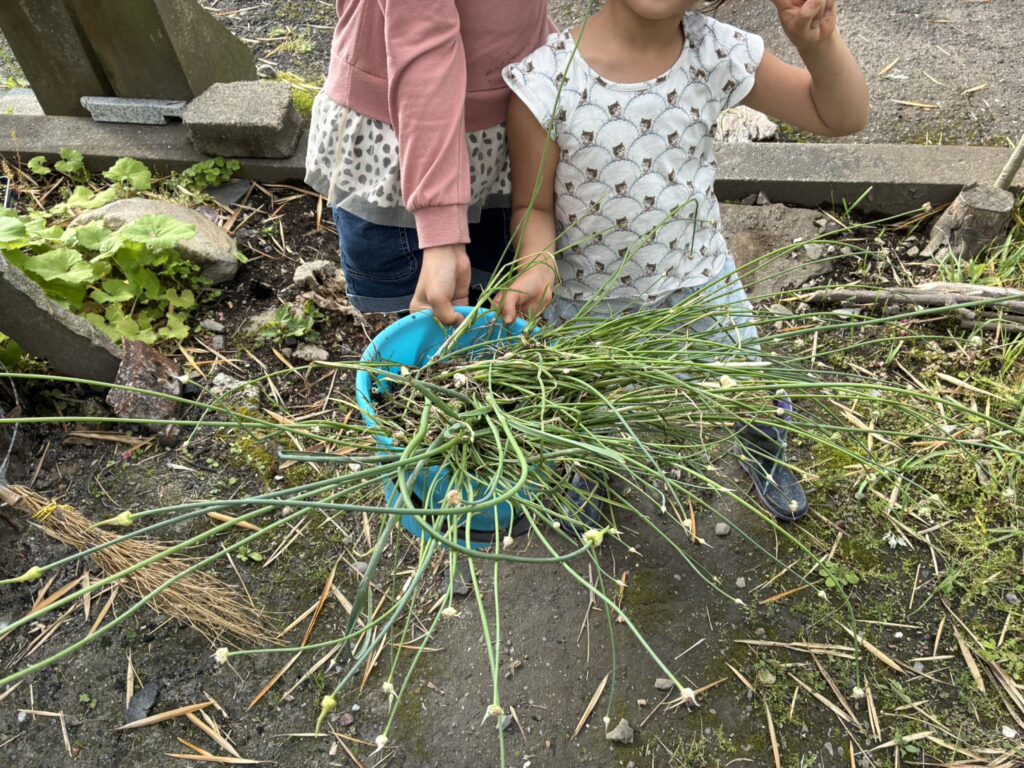 収穫したノビルは、きれいに洗って細かく刻んでチヂミにしていただきました。